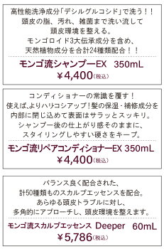 スカルプシャンプー モンゴ流バリューセット [モンゴ流シャンプー EX & モンゴ流コンディショナー EX & スカルプエッセンス Deeper] 薬用シャンプーではなくスカルプシャンプー 頭皮美容液 セット 男女兼用 ノンシリコン 保湿 スカルプケア
