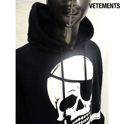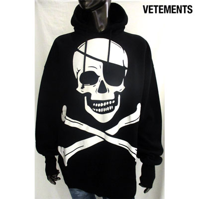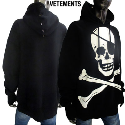 2019年秋冬新作 ヴェトモン VETEMENTS メンズ パーカー フーディ 長袖 ロゴ ユニセックス着用可 フロントビッグスカルプリント・フード棘スタッズ付きパーカー ブラック USS197085 BLACK (R135300) GB91A【送料無料】 【smtb-TK】