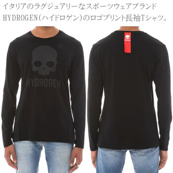 ハイドロゲン ロンT Tシャツ 長袖 カットソー メンズ ブランド 大きいサイズ プリント 黒 白 クルーネック 丸首 スカル HYDROGEN ICON SKULL TEE LS 250635 [ネコポス発送]